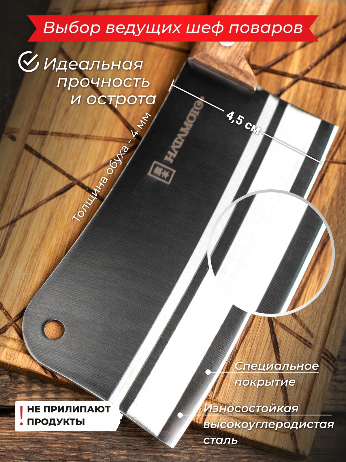 Кухонный топорик Hatamoto HN-HH190, 18,5 см, сталь SUS420J2, для мяса, костей, овощей и зелени интересное: