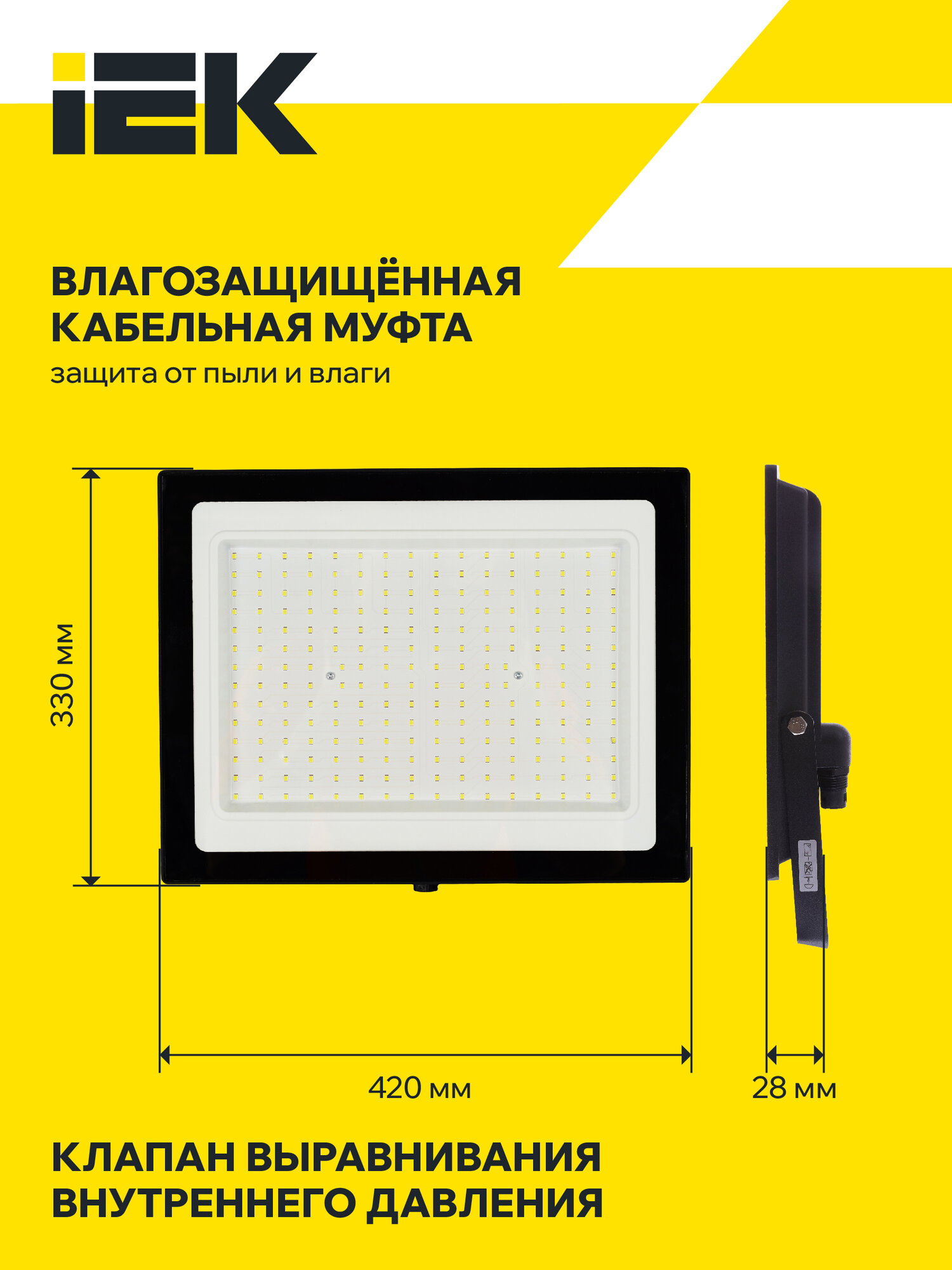 Прожектор СДО 06-200 светодиодный черный IP65 6500K IEK, 200 Вт, холодный дневной свет