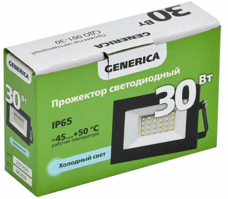 СохранитьПрожектор светодиодный уличный 30вт 6500К IP65 черный GENERICA интересное: