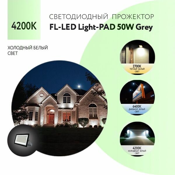 Прожектор светодиодный Foton Lighting FL-LED Light-PAD Grey 50W 4200К, 50 Вт, свет: дневной белый