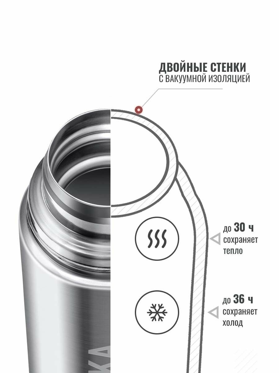 Классический термос Relaxika 101, 1 л, серебристый