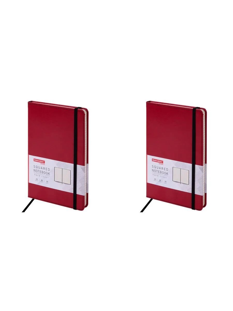 2 шт. Блокнот А5 (148x218 мм), BRAUBERG "Office", под кожу, 80 л., резинка, клетка, красный, 111030