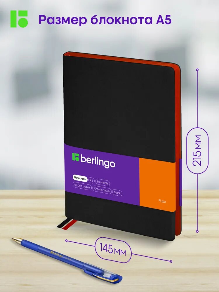 Записная книжка А5 Berlingo "Fuze", 80 листов, клетка, кожзам, цветной срез, черный (NB0_87507)