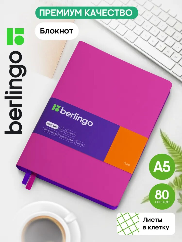 Записная книжка А5 Berlingo "Fuze", 80 листов, клетка, кожзам, цветной срез, фуксия (NB0_87504)