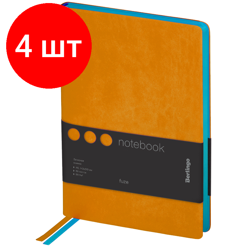 Купить Комплект 4 шт, Записная книжка А5 80л, кожзам, Berlingo "Fuze", цветной срез, оранжевый