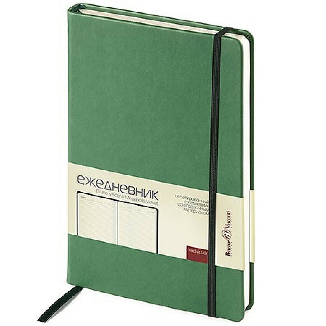 Ежедневник недатированный Bruno Visconti "MEGAPOLIS VELVET" в твердой обложке, с резинкой, зеленый А5 арт.3-468/03