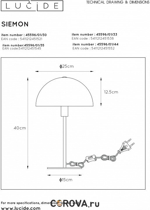 Настольная лампа Lucide SIEMON 45596/01/35