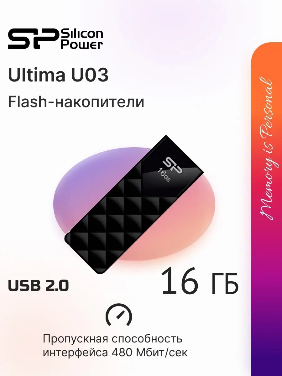 Флешка Silicon Power Ultima U03 16 ГБ, черный