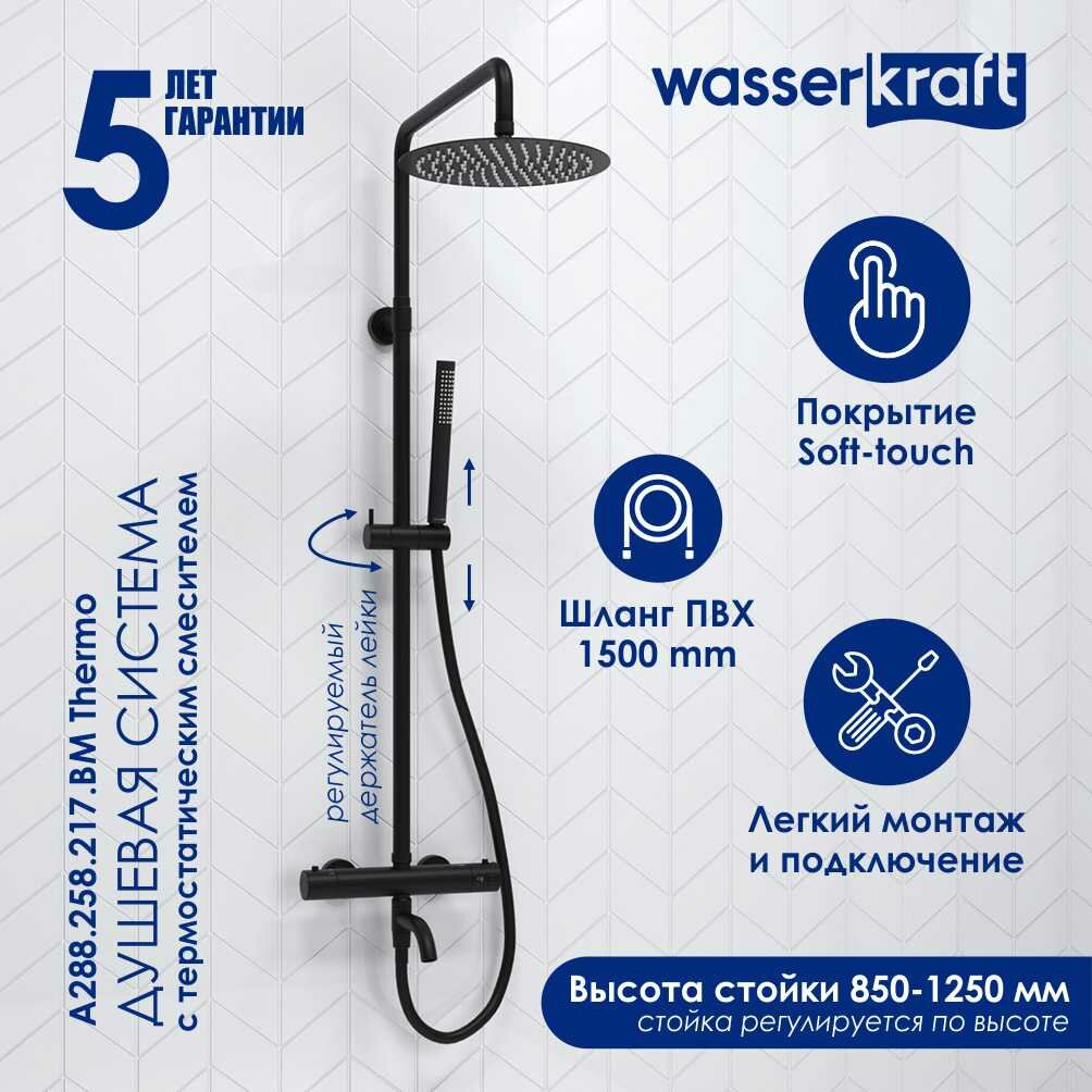 Душевой комплект термостат WasserKRAFT Elbe A288.077.217. BM Thermo черный Soft-touch