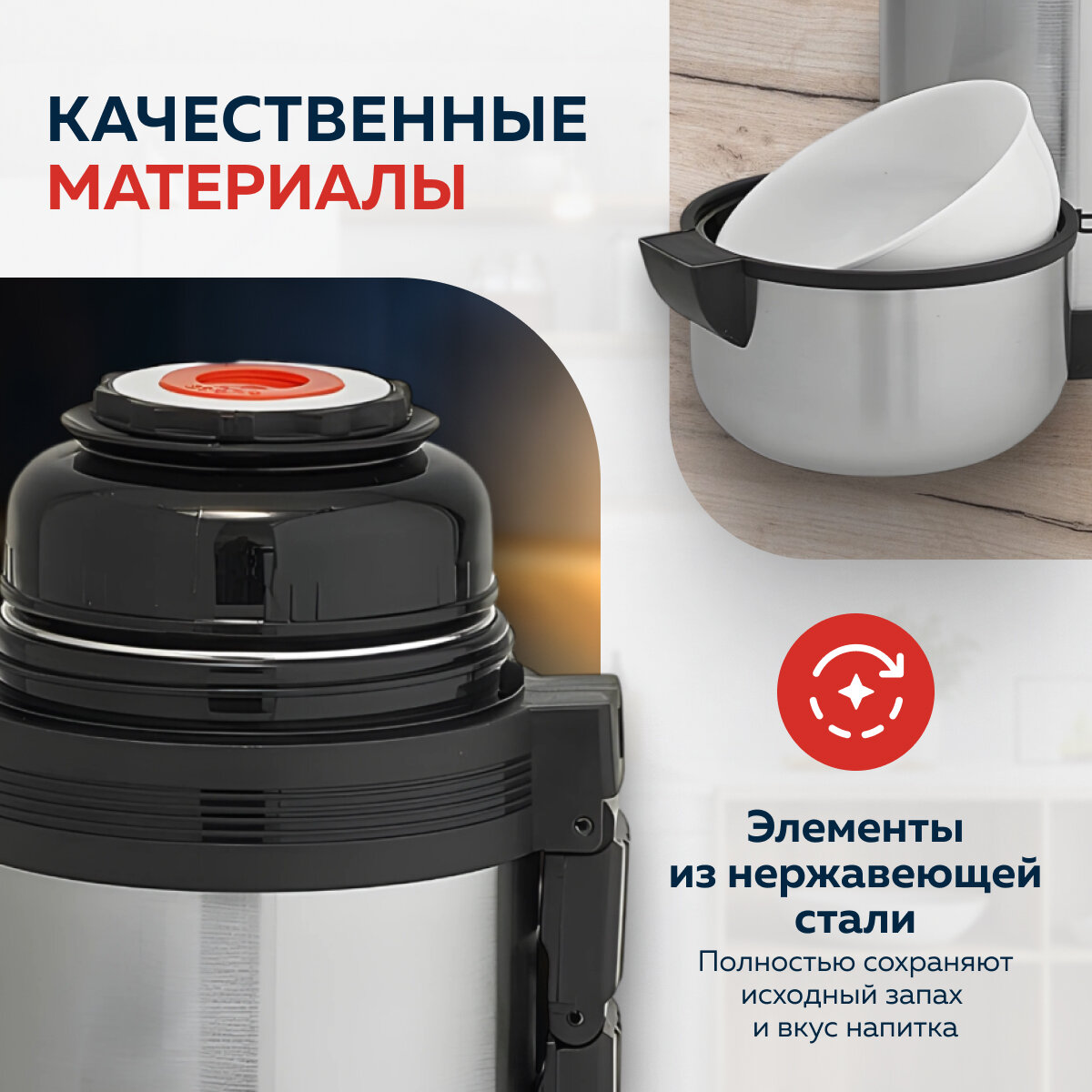 Термос Webber SST-800P универсальный, с ручкой на корпусе, объём 800 мл