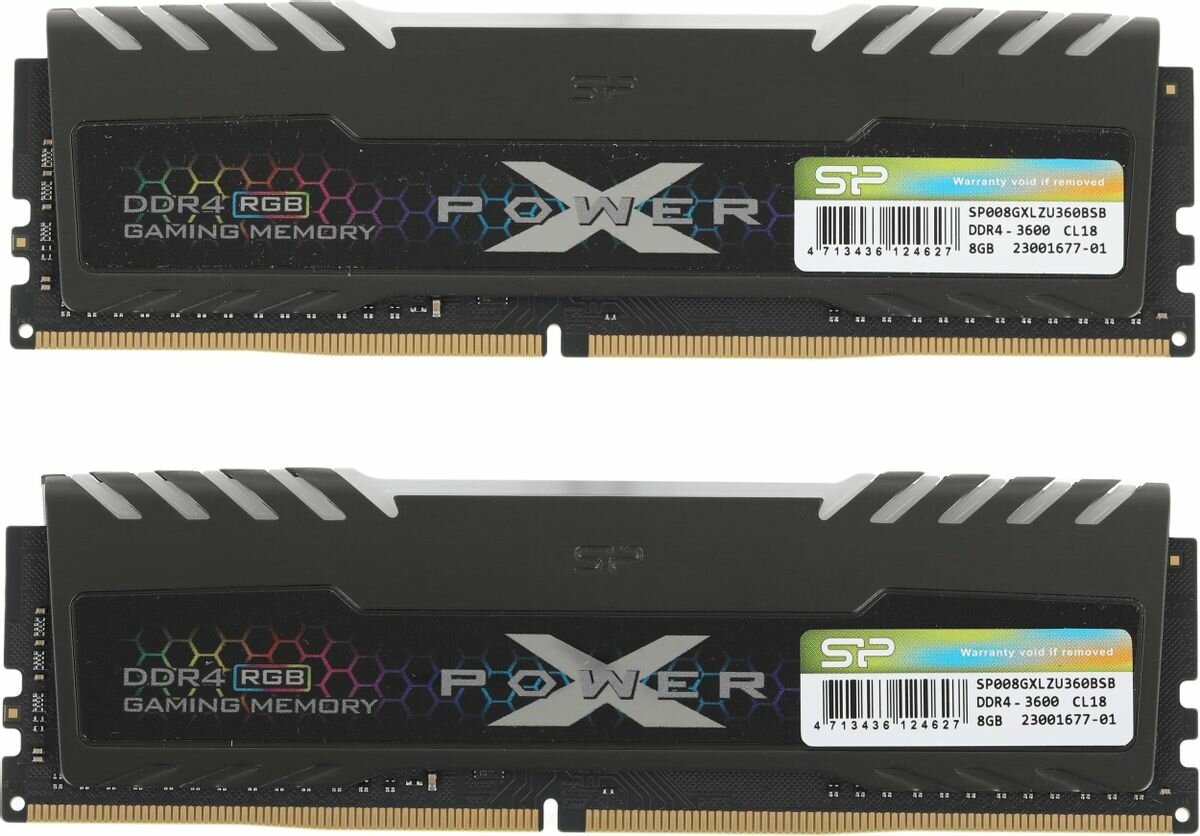 DDR4 2x8Gb 3600MHz Silicon Power SP016GXLZU360BDB Xpower Turbine RGB RTL Gaming PC4-28800 CL1