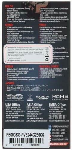 Купить Оперативная память Patriot Memory VIPER ELITE II 4 ГБ DDR4 DIMM CL16 PVE244G266C6