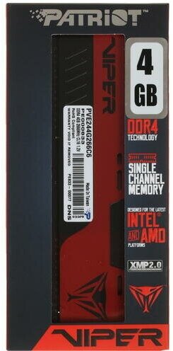 Оперативная память PATRIOT MEMORY Patriot DDR4 4Gb 2666MHz pc-21300 Viper Elite ll (PVE244G266C6)