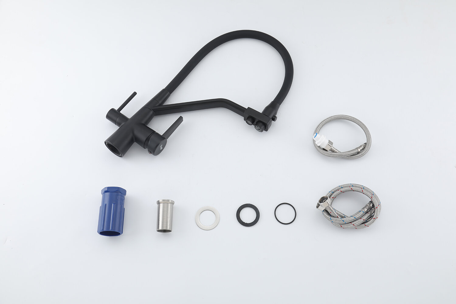 Смеситель для кухни с гибким изливом Frap F4398-5, с фильтром под питьевую воду, цвет сатиновый/черный, латунь