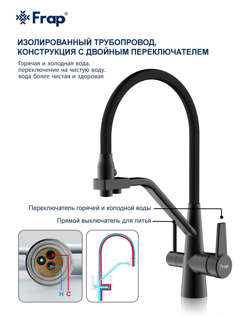 Смеситель для кухни FRAP F4398-6 с подключением фильтра, черный