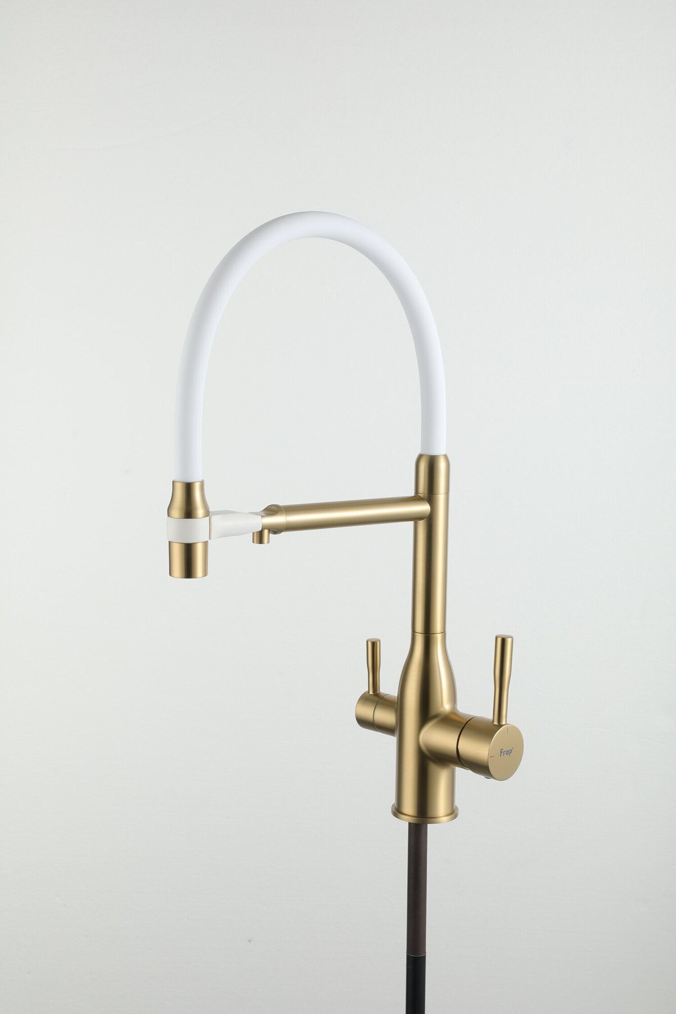 Смеситель для кухни Frap F4398-3 с подключением фильтра, ,белый/золото