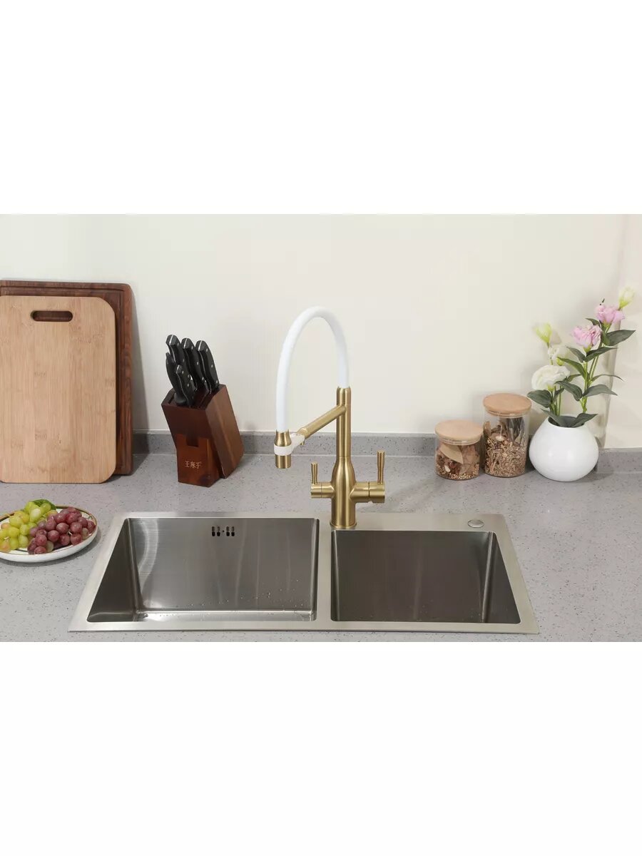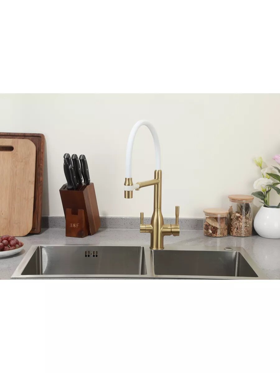 Смеситель для кухни Frap F4398-3 с подключением фильтра, , белый/золото