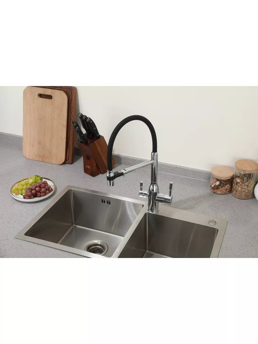 Смеситель для кухни Frap F43550-6 с подключением фильтра, черный