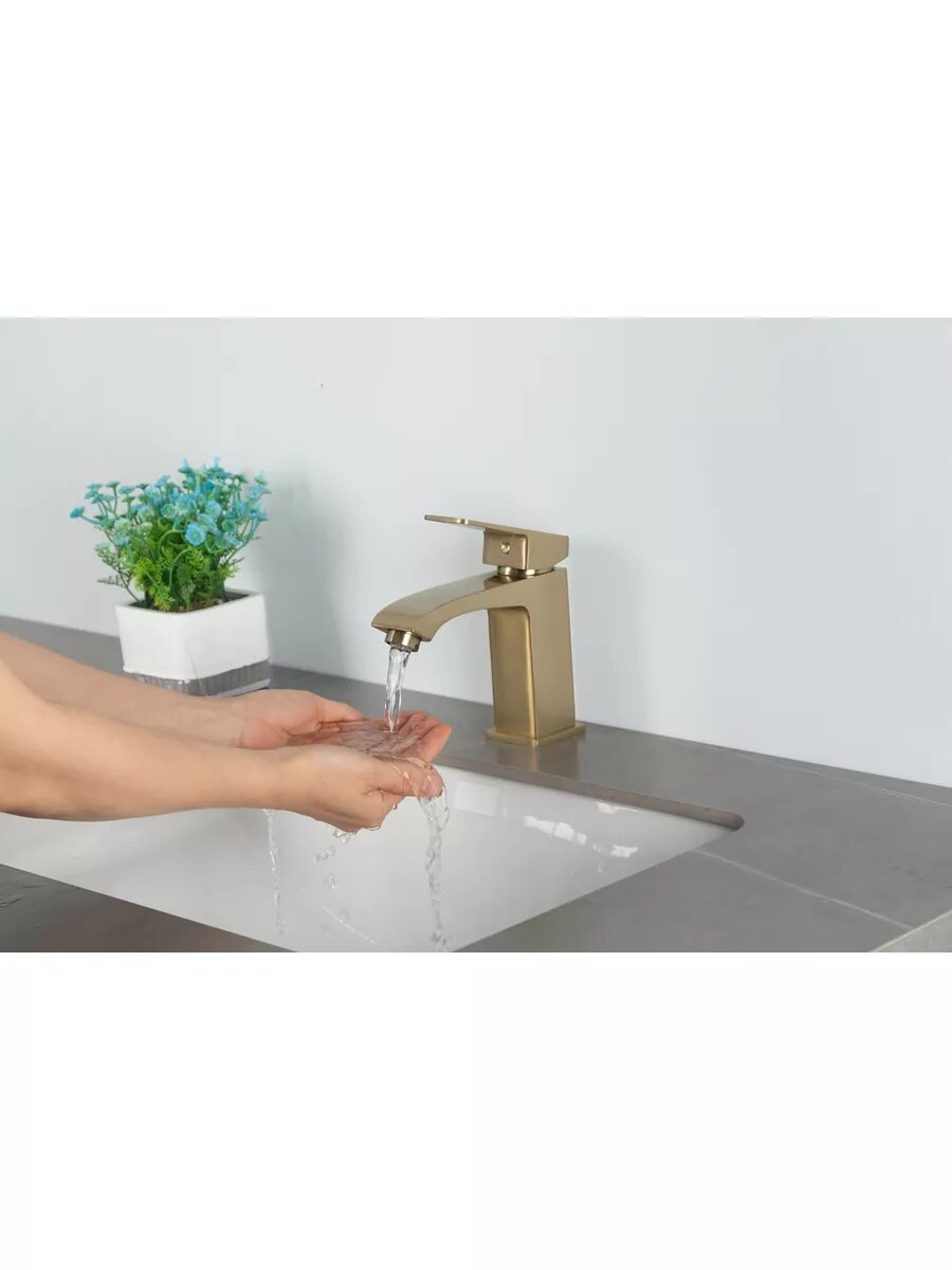 Смеситель для раковины Frap F1076-3 золотой сатин, латунь