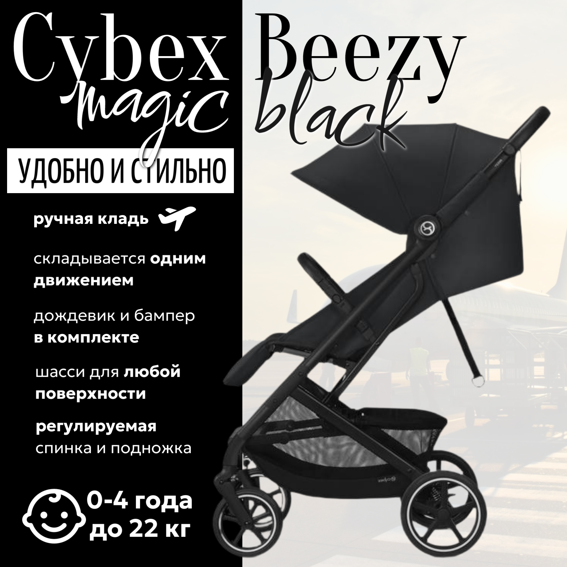 СохранитьКоляска прогулочная с дождевиком и бампером черная Cybex Beezy Magic Black 2024 интересное: