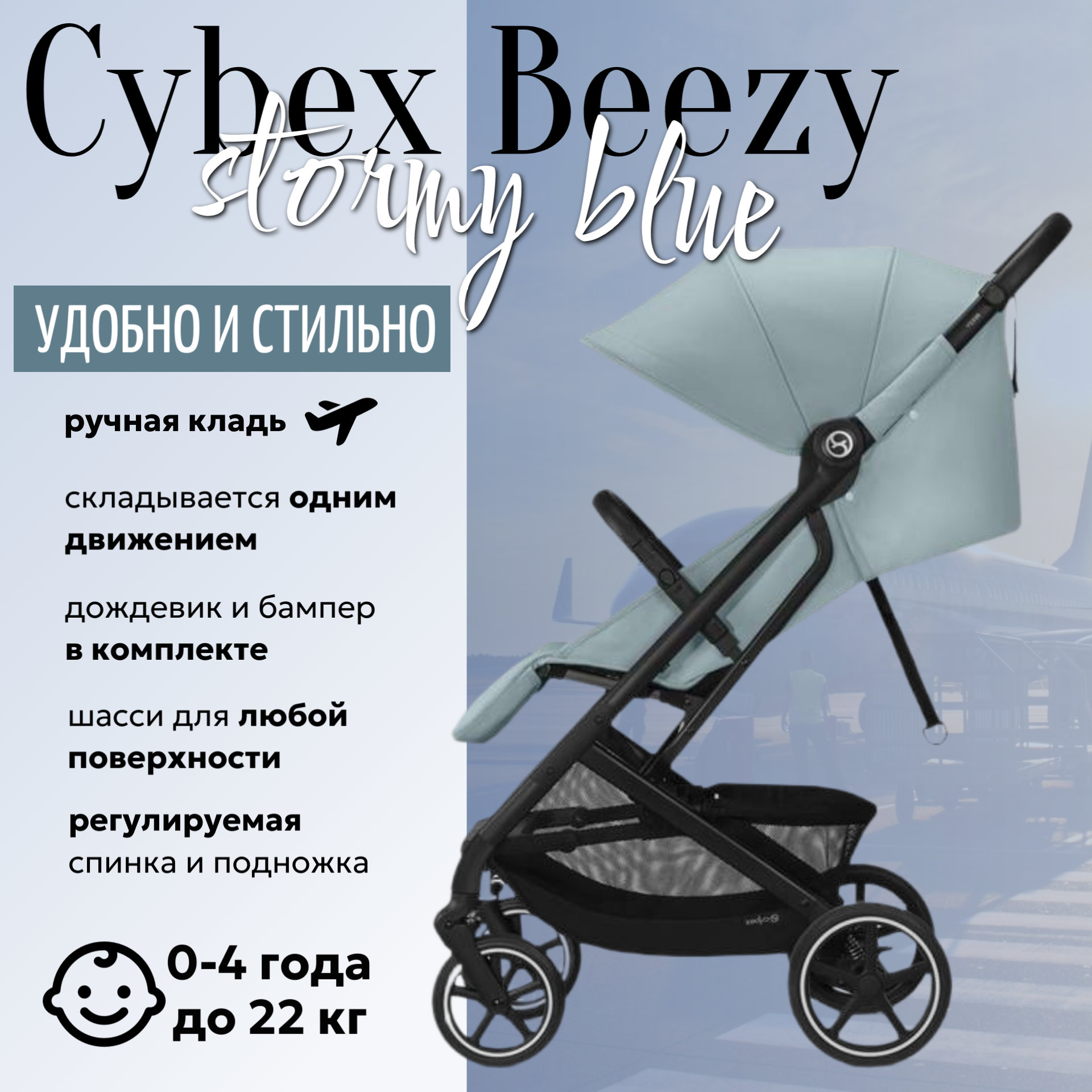 Купить Коляска прогулочная с дождевиком и бампером голубая Cybex Beezy Stormy Blue 2024
