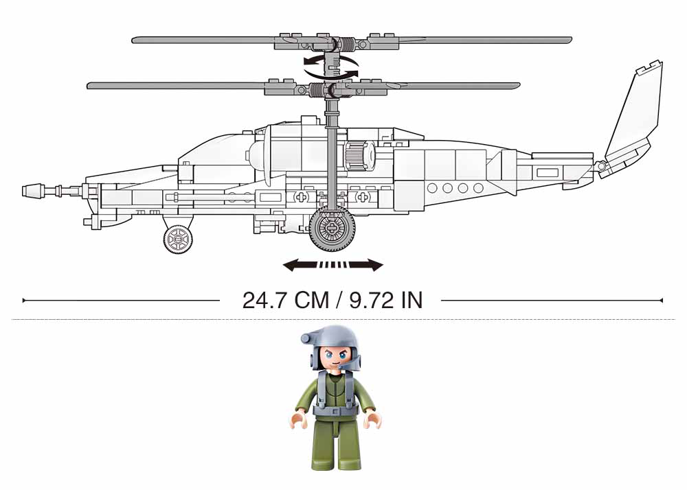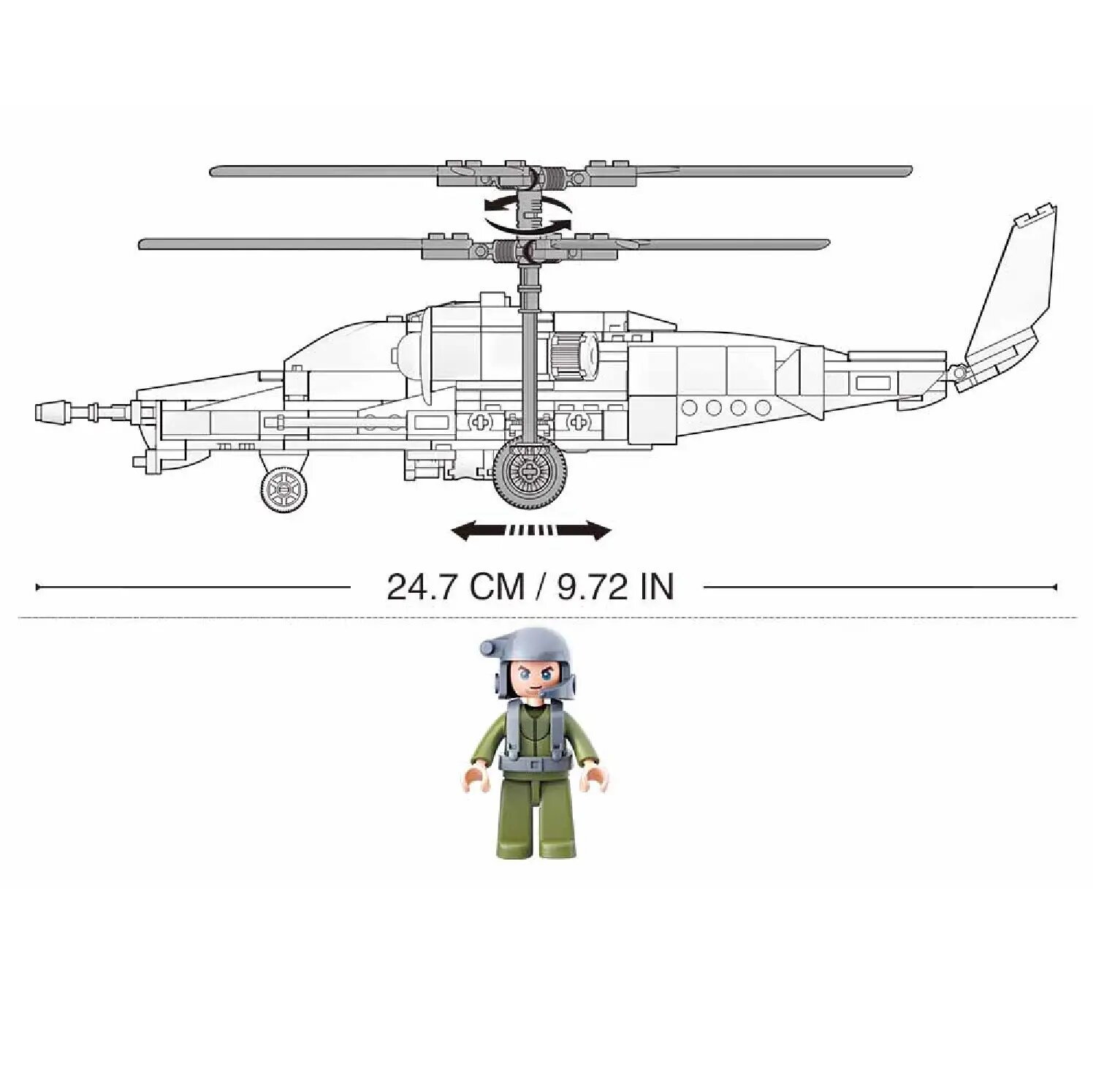Купить Конструктор SLUBAN серия Армия / Российский военный вертолёт КА50 "Черная акула" M38-B0752 пластиковый детский для мальчиков (330 деталей)