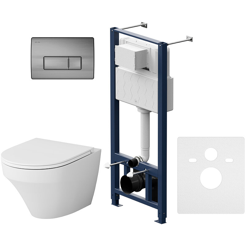 Инсталляция с подвесным унитазом AM.PM Gem IS30251.901700 безободковый, комплект 6 в 1 с сиденьем микролифт