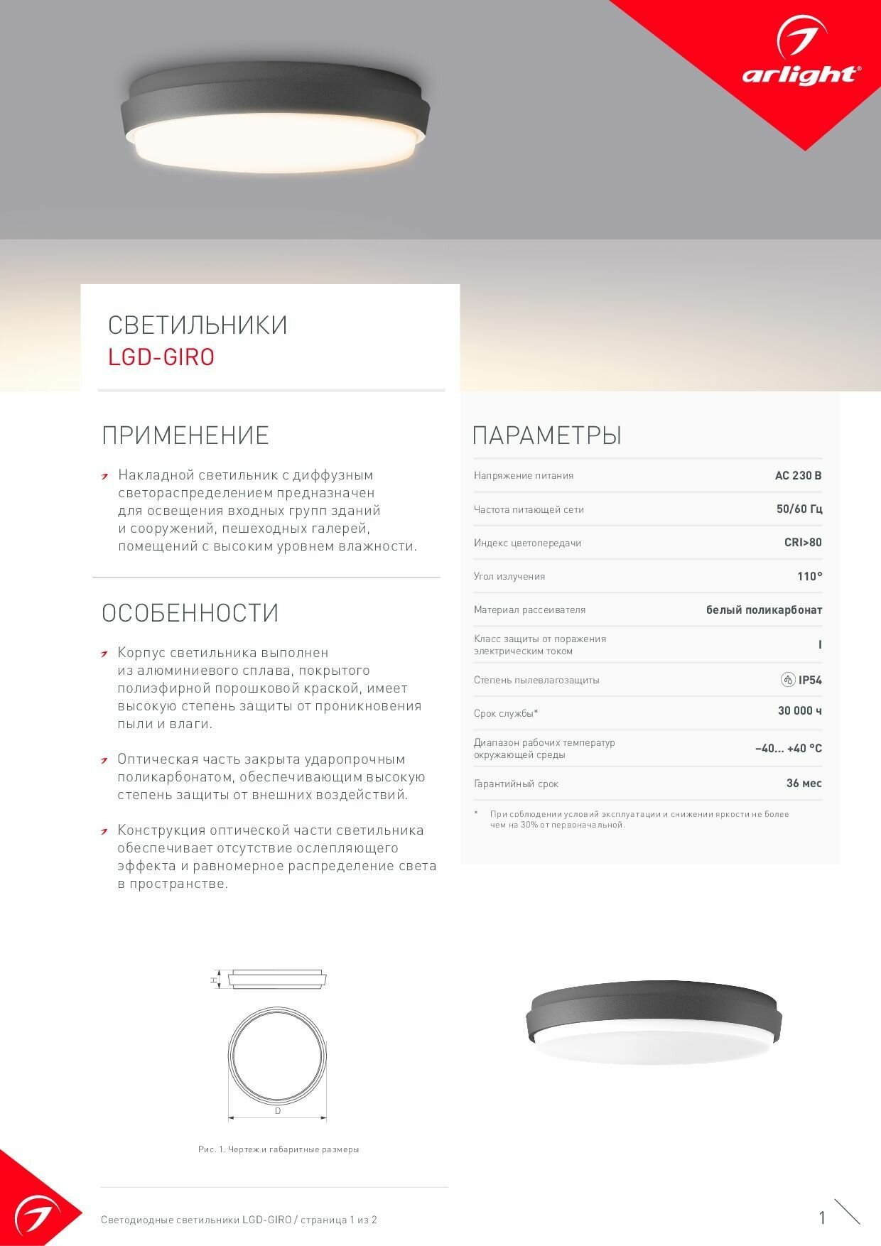 029950 Светильник LGD-GIRO-R300-30W Warm3000 (GR, 110 deg, 230V) (ARL, IP54 Металл) интересное: