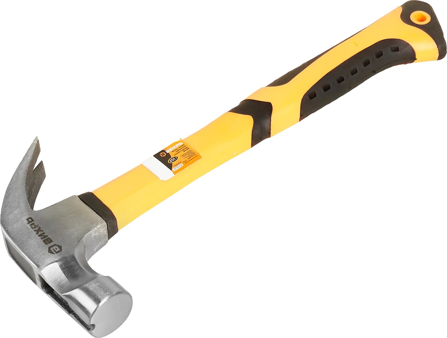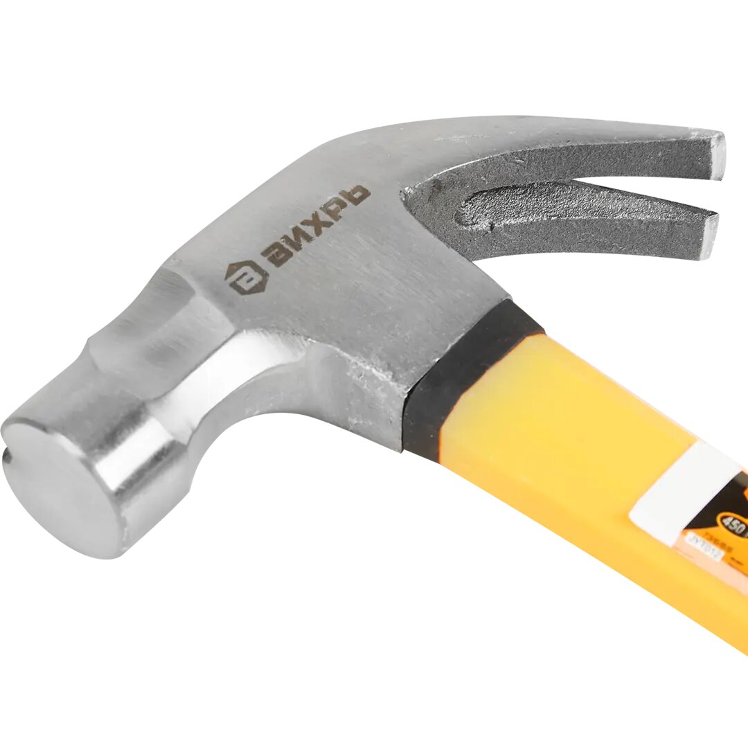 Молоток-гвоздодер Вихрь, фиберглассовая двухкомпонентная рукоятка, 450 г