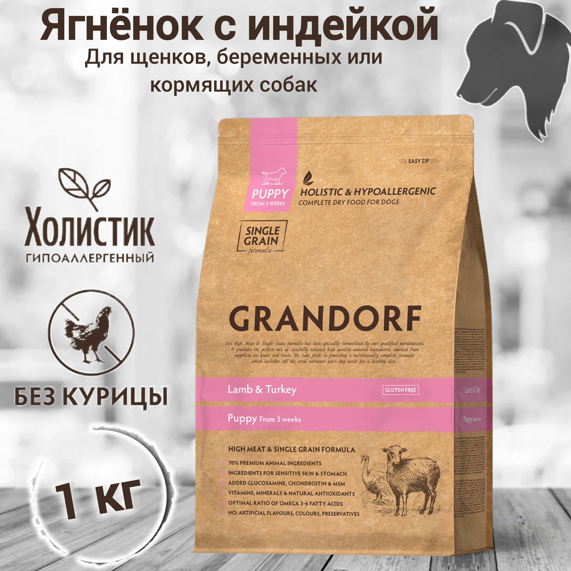 Грандорф Ягненок с индейкой для щенков всех пород 1кг /GRANDORF DOG Lamb&Turkey PUPPY/