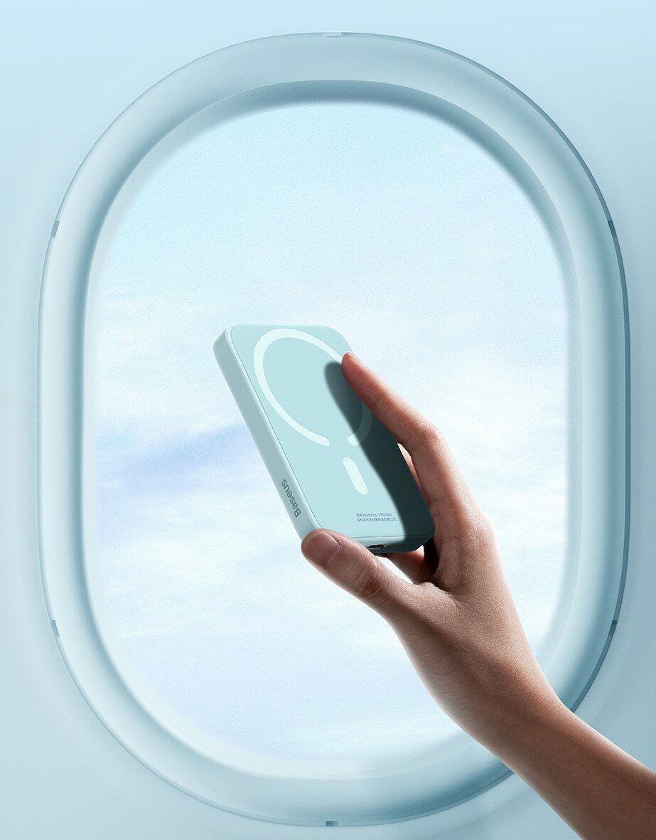 Внешний аккумулятор Baseus Magnetic Mini Air Wireless Fast Charge 10000mAh, 20W, (With сable Type-C to Type-C), (P10059001313-00), голубой
