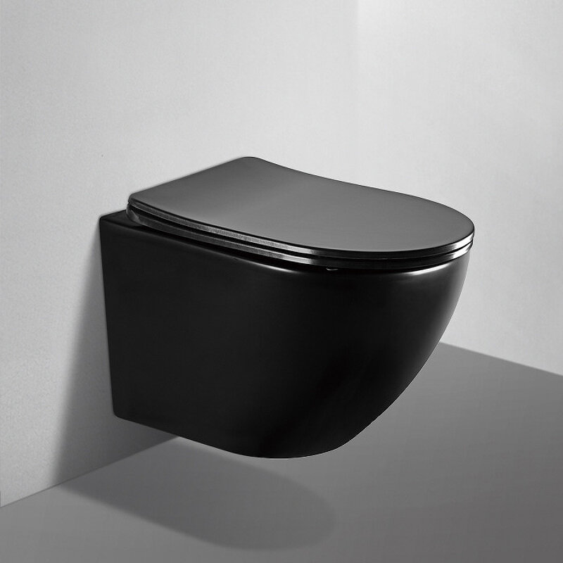 Унитаз подвесной ABBER BEQUEM AC1100MB с крышкой микролифт, безободковый, черный матовый