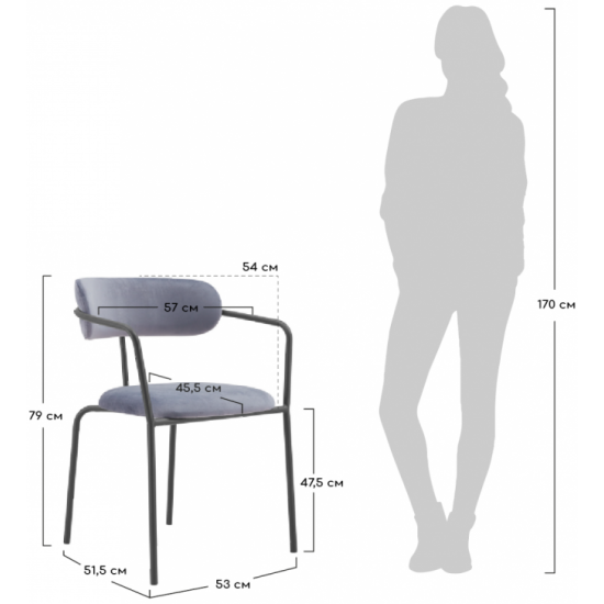 Стул для кухни мягкий со спинкой и с подлокотниками Ant букле серый лофт офисный
