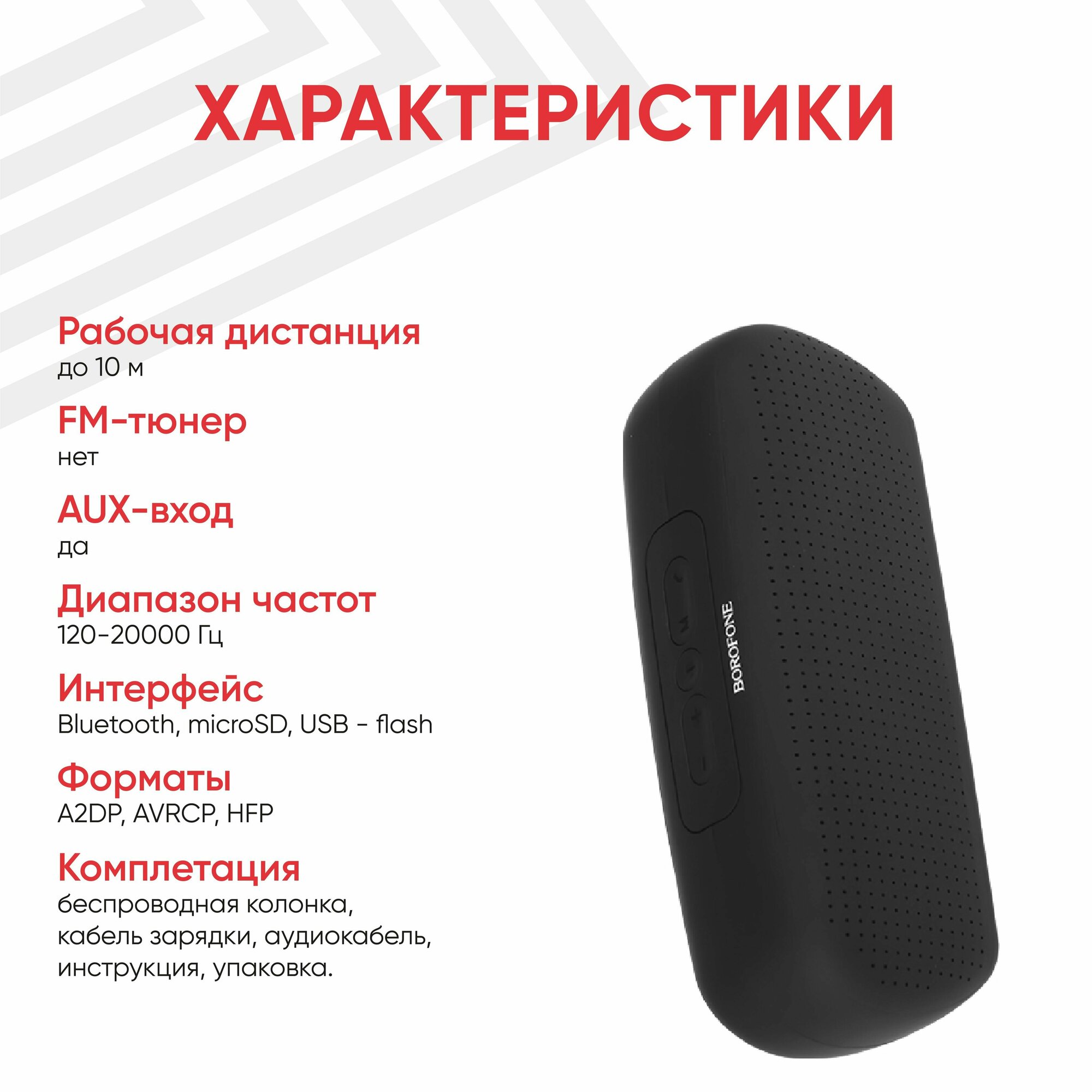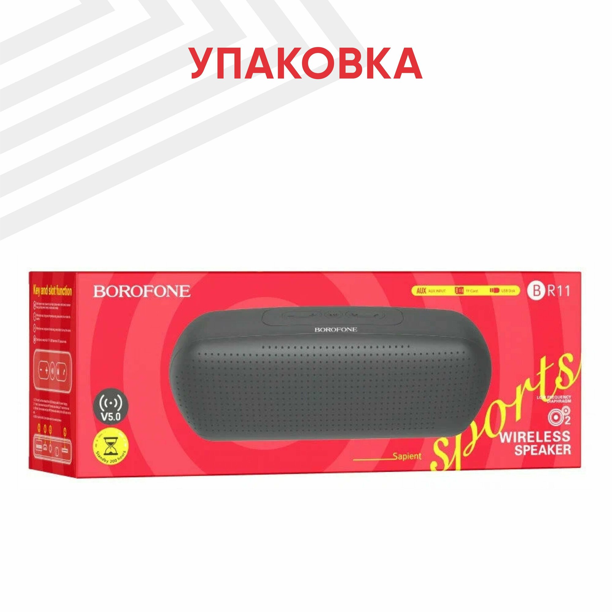 Купить Портативная колонка Borofone BR11 Sapient Sports, 1200мАч, 2 динамика 3Вт, BT 5.0, AUX, MicroSD, USB, черный