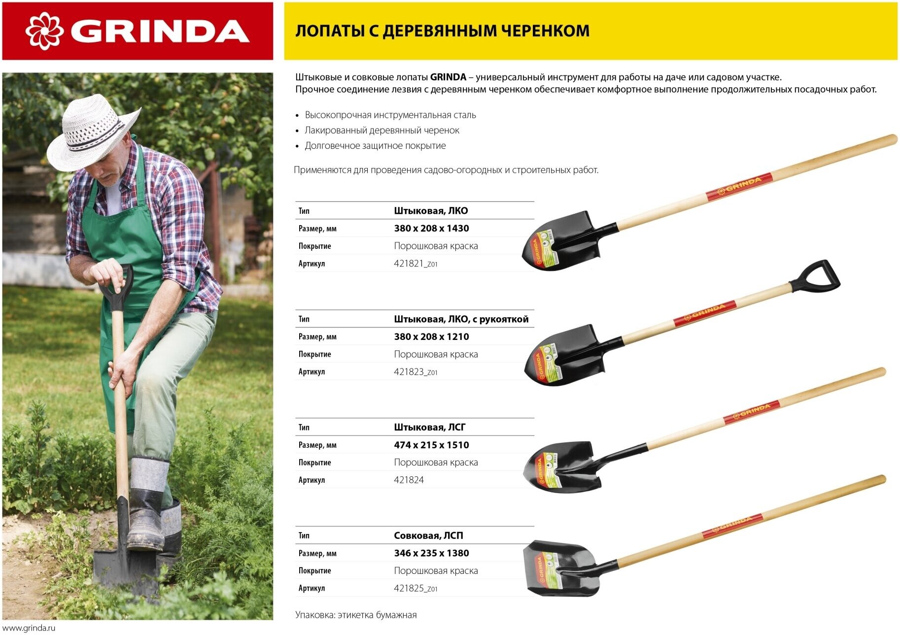 Ниже Вы можете прочитать отзывы на GRINDA 380 х 208 х 1400 мм, полотно 1.6 мм, закалено, деревянный черенок высш. сорт, штыковая лопата (421821), ознакомится с подробными характеристиками, посмотреть интересные обзоры и фотографии на GRINDA 380 х 208 х 1400 мм, полотно 1.6 мм, закалено, деревянный черенок высш. сорт, штыковая лопата (421821).