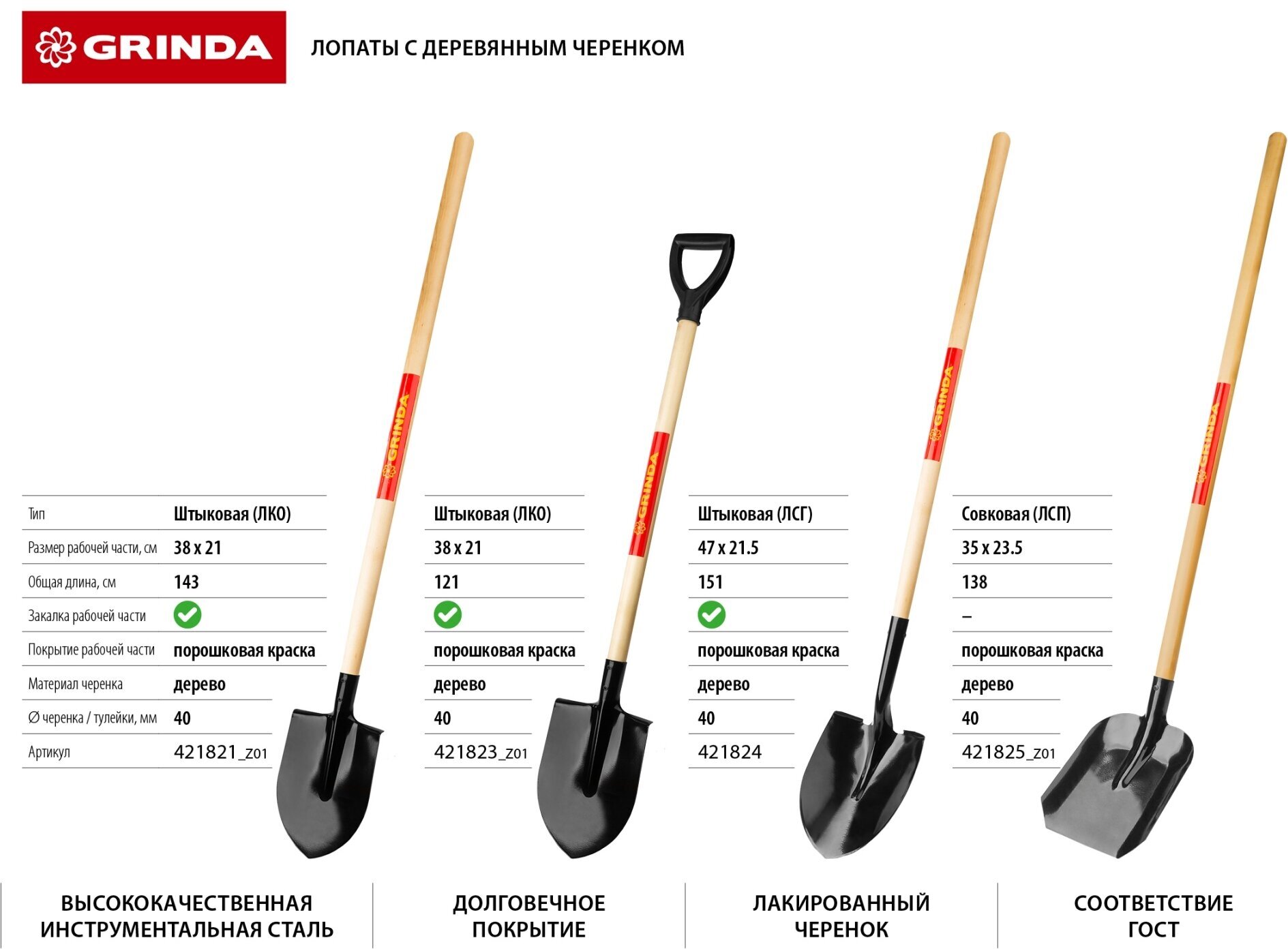 Лопата штыковая Grinda деревянный черенок 421821_z01