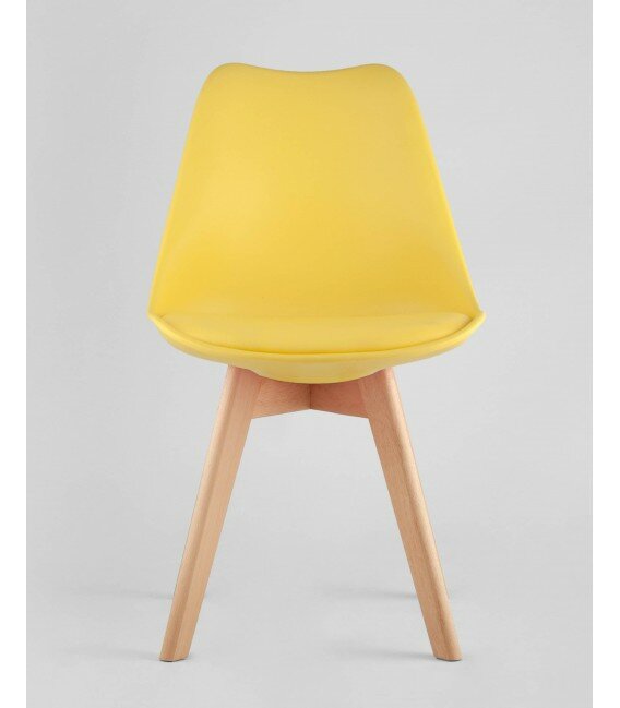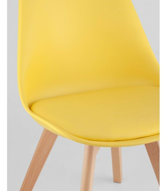 Стул STOOL GROUP Frankfurt желтый, сиденье из сочетания пластика и экокожи, ножки деревянные