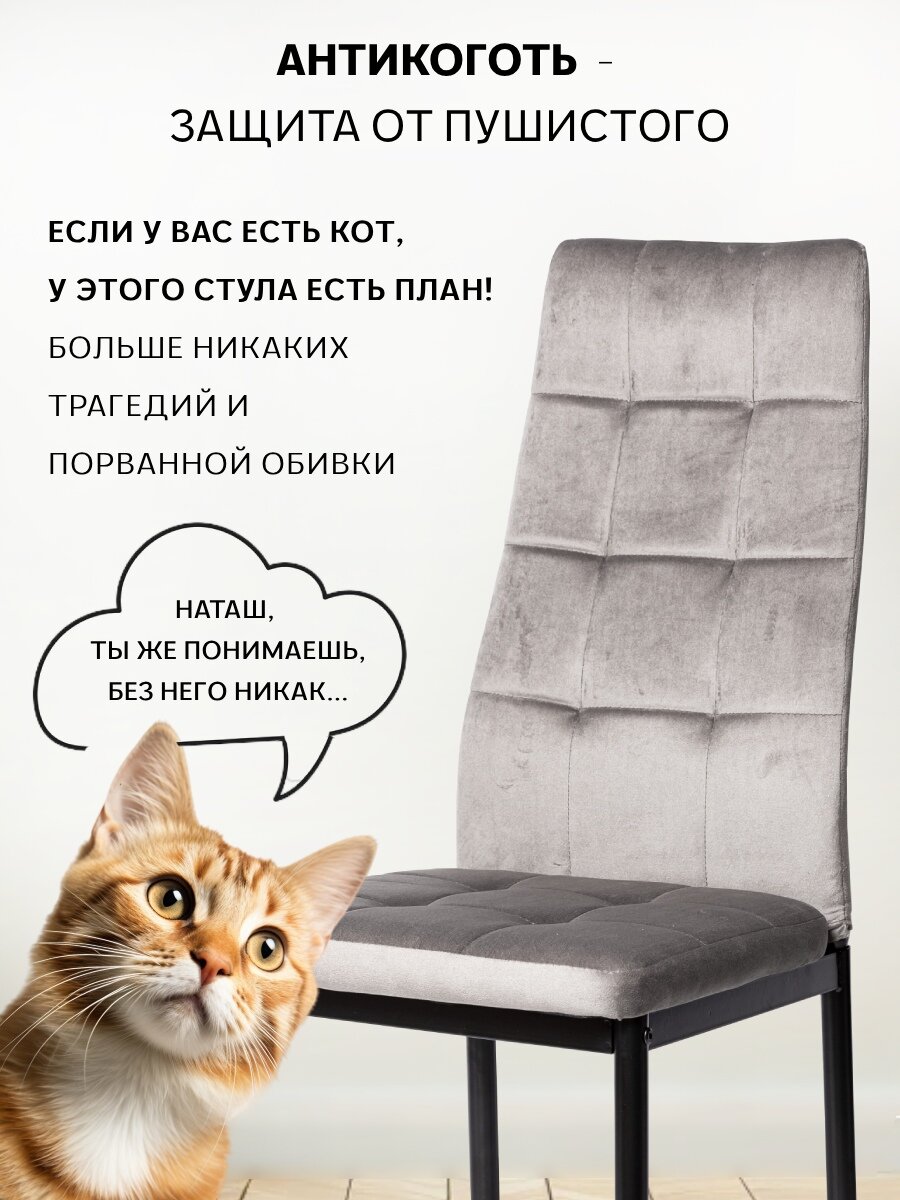 Стулья для кухни La Room Cafe 2, 4032В, велюр, серый, антивандальный, комплект 3 шт