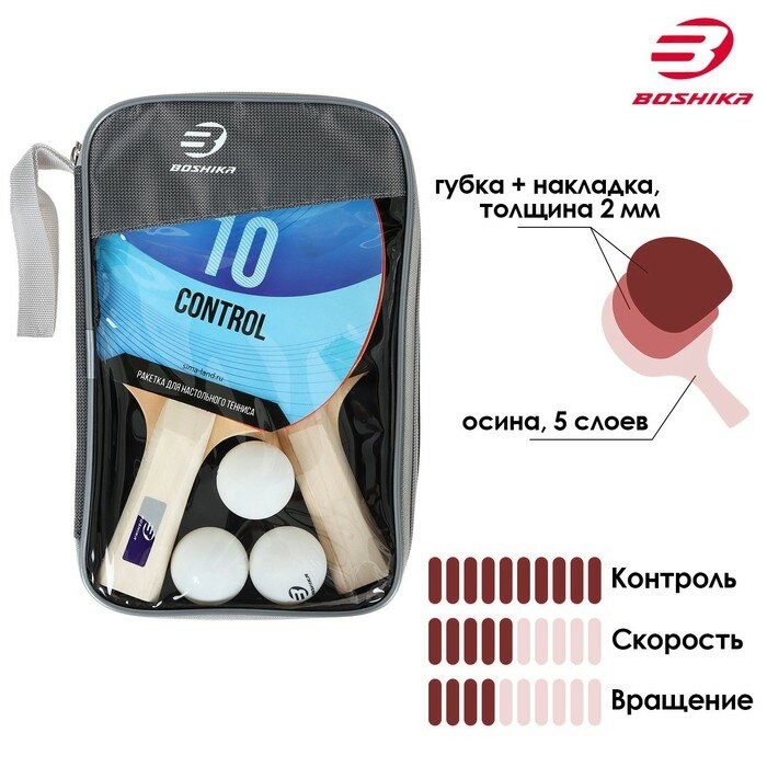 BOSHIKA Набор для настольного тенниса BOSHIKA Control 10, 2 ракетки,3 мяча, накладка 1,5 мм, коническая ручка