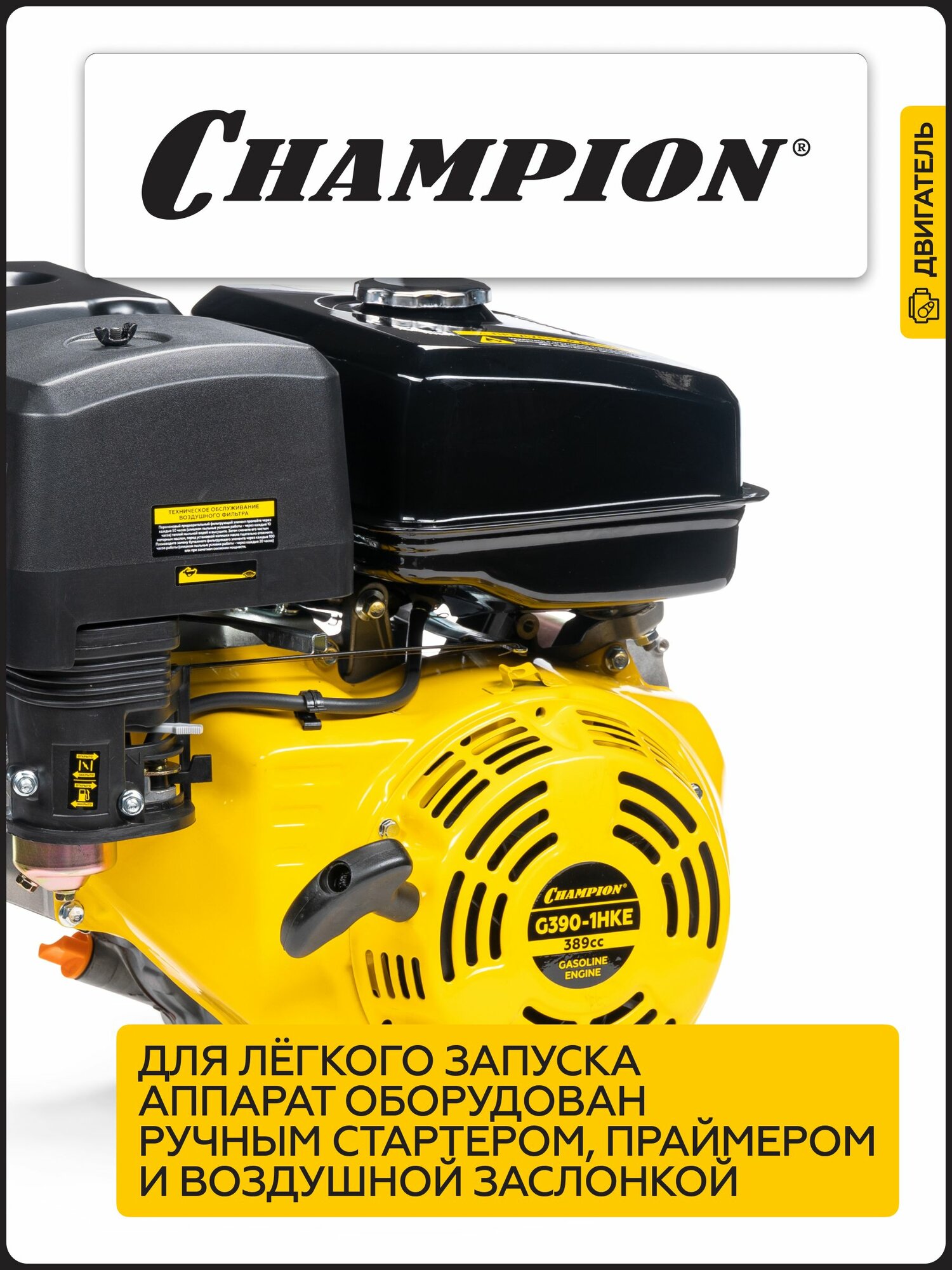 Двигатель бензиновый четырехтактный CHAMPION G390-1HKE, 9,6 кВт, 389 см3, ручной/ электрический запуск интересное: