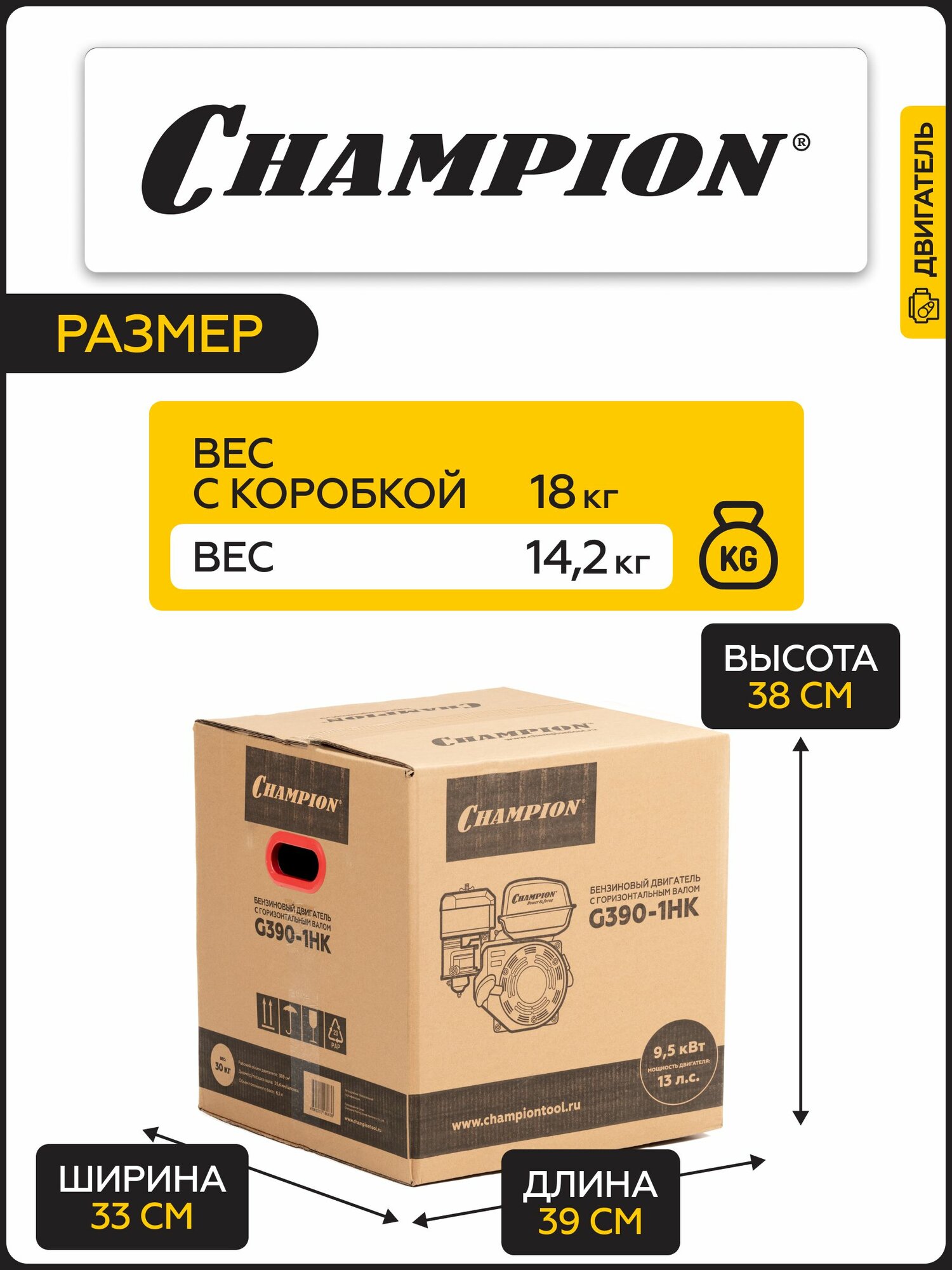 Двигатель бензиновый четырехтактный CHAMPION G390-1HK, 9,6 кВт, 389 см3, ручной запуск интересное: