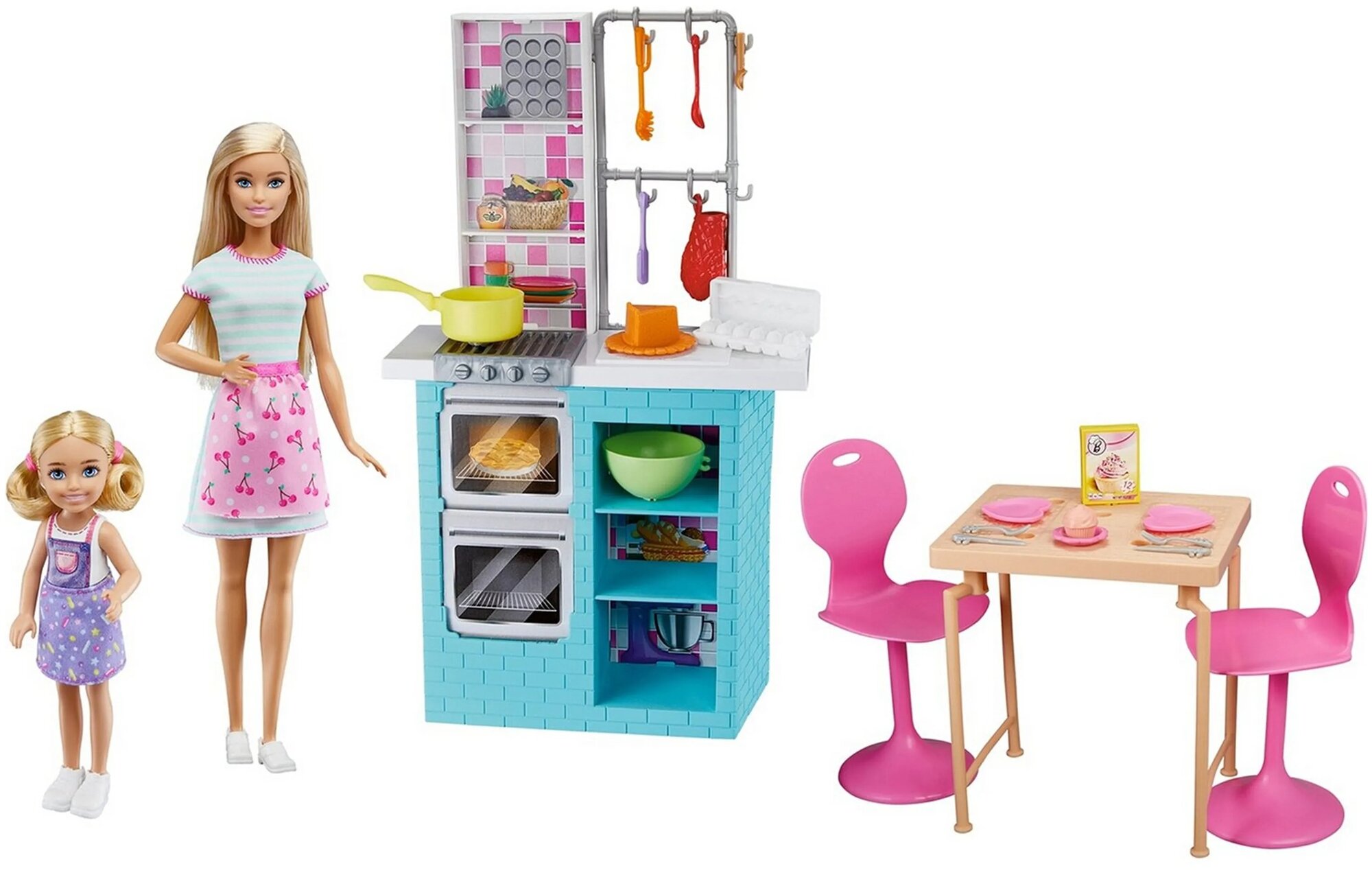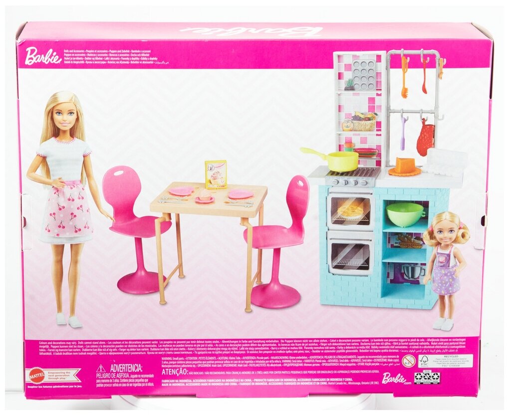 | Комплектация | 2 куклы, 1 стол, 2 стула, 1 кухонное рабочее место, 15 аксессуаров |