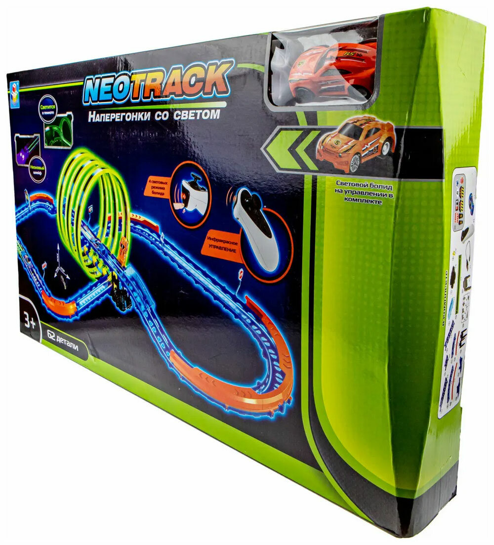 Автотрек Neotrack, 62 детали, светящийся, ИК-управление, в комплекте 1 машинка с аккумулятором