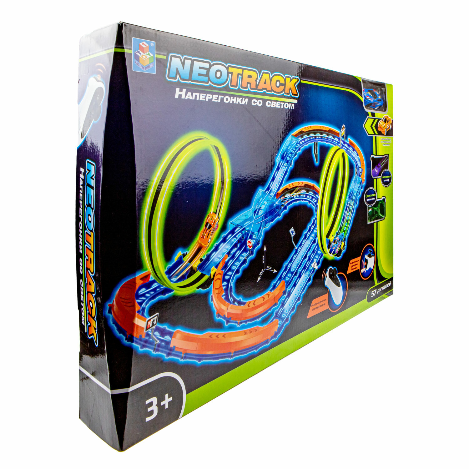 1Toy Neotrack Автотрек 57 деталей, светящийся, ик управление Т21044 с 3 лет