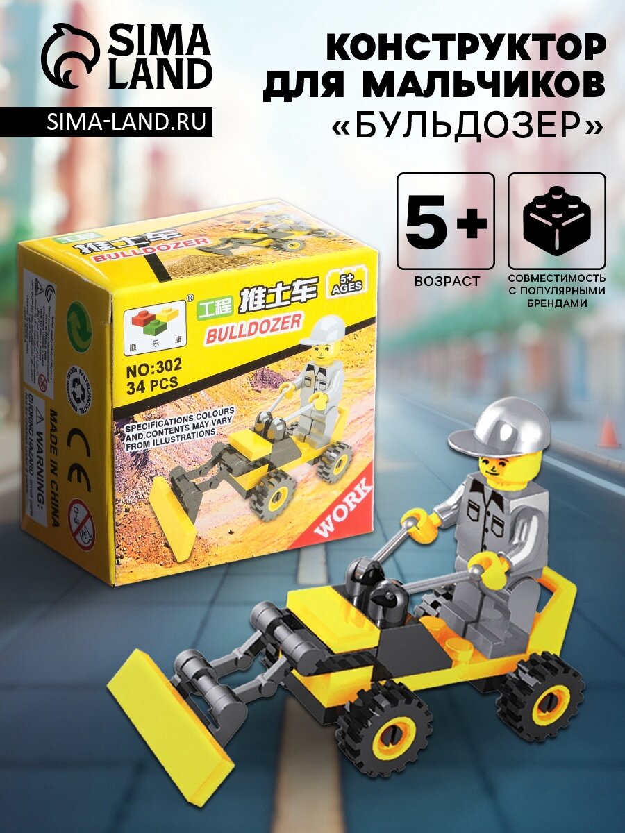 Купить 50 шт. Конструктор «Бульдозер», 34 детали (Страна производитель: Китай)