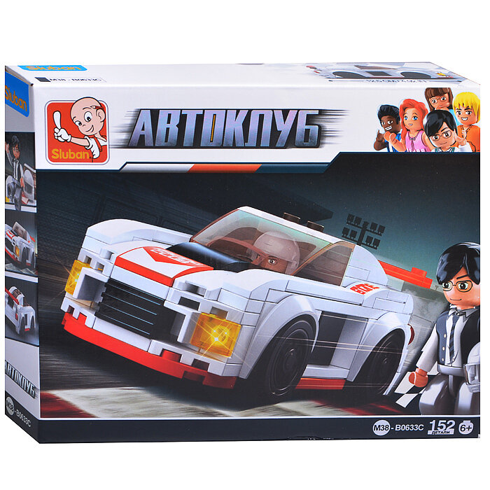 Конструктор пластиковый детский для мальчиков "Спорткар" SLUBAN M38-B0633C "Автоклуб" (152 детали)