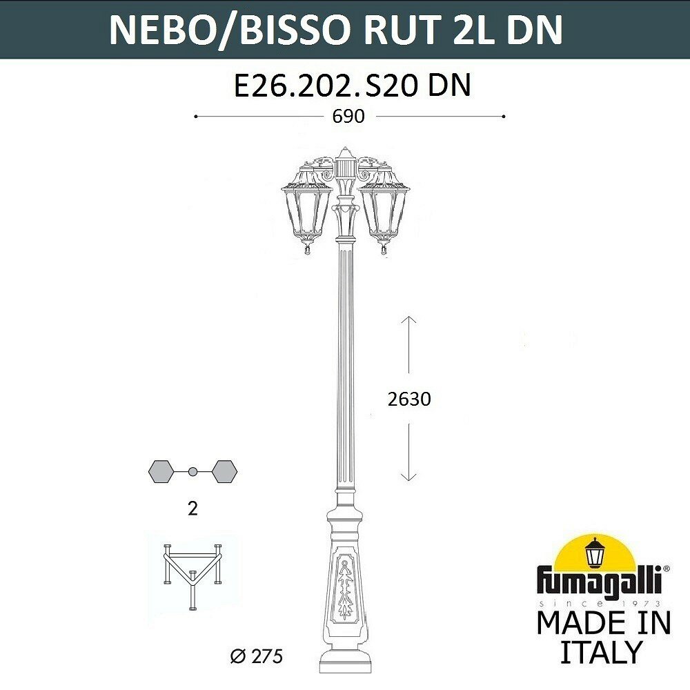 Парковый фонарь FUMAGALLI NEBO BISSO/RUT 2L DN E26.202.S20.AXF1R DN