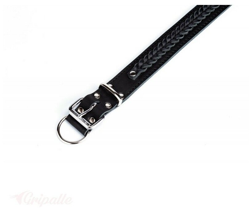 Ошейник кожаный двухслойный с косичкой GRIPALLE Берт, натуральная кожа, стальная фурнитура, размер: ширина 40 мм, длина 55 см, цвет черный, упакован в полиэтиленовый пакет