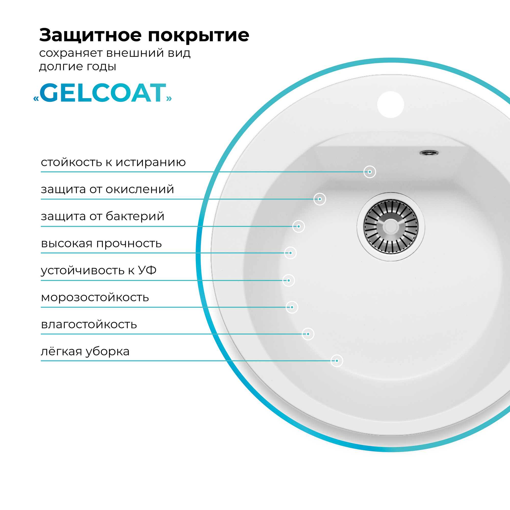 СохранитьМойка для кухни каменная POLYGRAN ATOL-520, белая, врезная, круглая (№36 Белый Хлопок) интересное:
