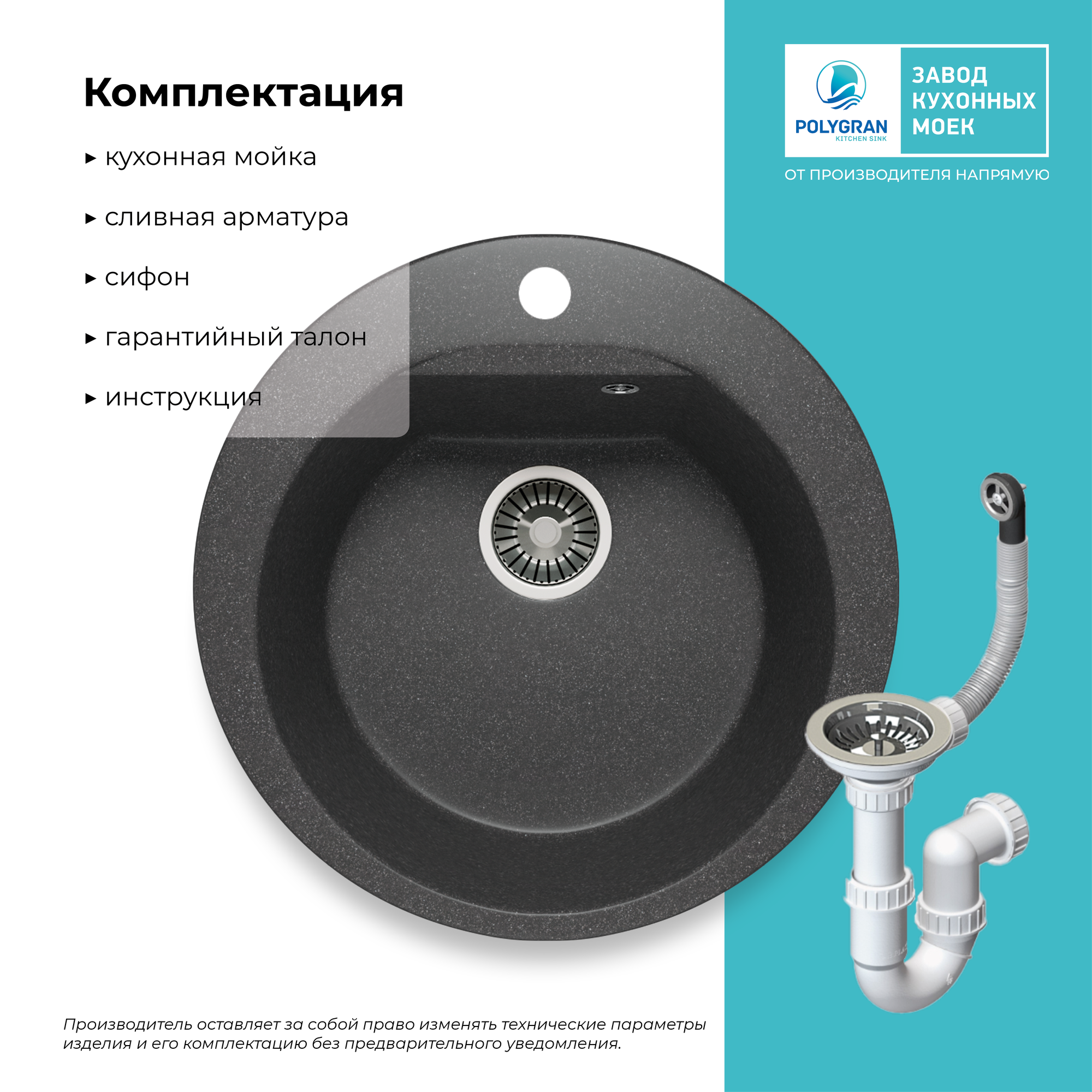 Купить Мойка для кухни каменная POLYGRAN ATOL-520, серая, врезная, круглая (№16 Черный)